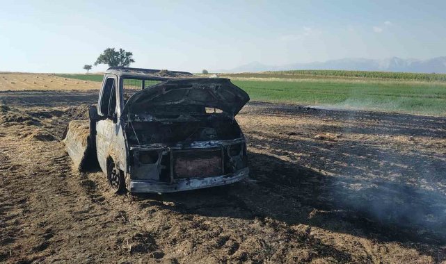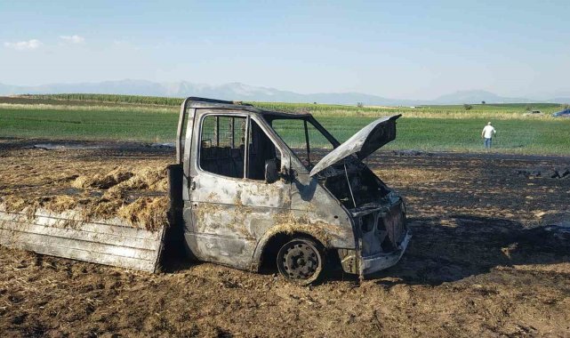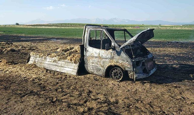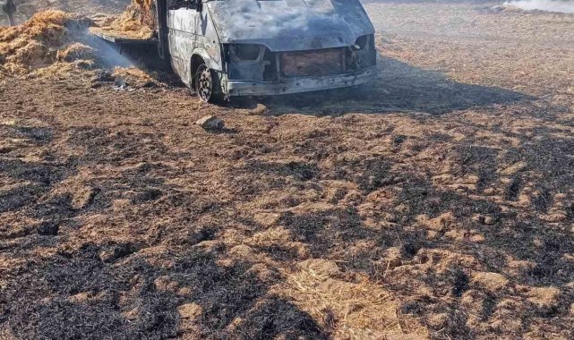 Sahibinden habersiz alınan saman balyaları kamyonet ile birlikte yandı