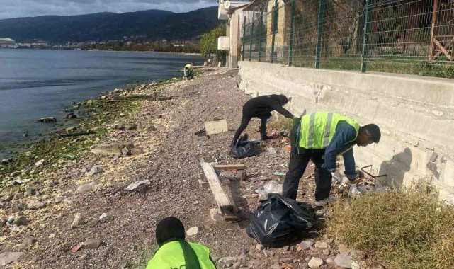 Yarımca Sahili'nde deniz kenarında temizlik çalışması yapıldı. Plastik ve cam atıklarla birlikte toplam 120 kilogram atık toplandı.