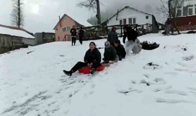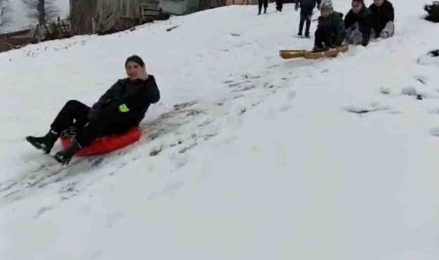 Sakarya'da yarıyıl tatilini fırsat bilen çocuklar, Hendek Dikmen Yaylası'nda kızak, poşet ve şambrellerle kayarak doyasıya eğlendi.