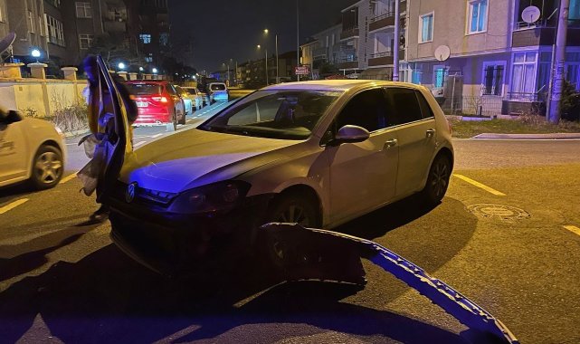 Sakarya'da ilginç kaza: Otomobilin kapısı, çarpıştığı aracın farında asılı kaldı