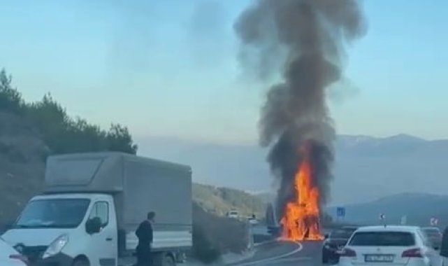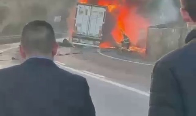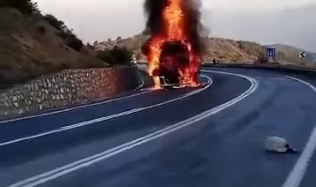 Sakarya'nın Pamukova ilçesinde seyir halindeyken motoru yanmaya başlayan plastik hammadde yüklü tır alev alev yandı.Pamukova-İznik karayolu Pekmezli Rampası mevkiinde meydana gelen olayda, M.İ. idaresindeki plastik hammadde yüklü 31 ASG 932 plakalı tırın motor kısmında elektrik aksamı kaynaklı yangın çıktı. Durumun haber verilmesi üzerine bölgeye itfaiye ekipleri sevk edildi. Sakarya ve Bilecik'ten gelen ekipler, yangını kısa sürede kontrol altına alarak söndürdü. Tırın alev alev yandığı anlar cep telefonu kamerası ile görüntülenirken, tırdan geriye demir yığını kaldı.Olayla ilgili inceleme başlatıldı.
