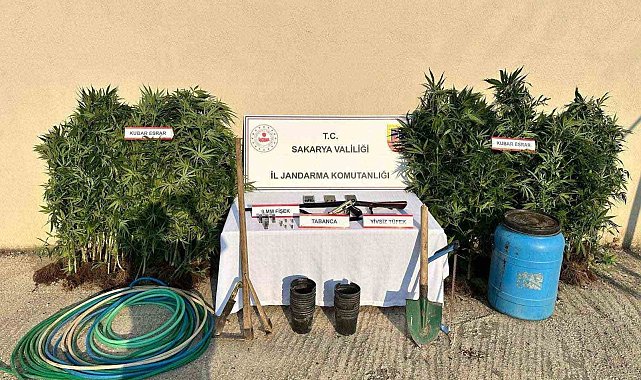 Sakarya'nın Hendek ilçesinde jandarma ekiplerince düzenlenen uyuşturucu operasyonunda 147 kök kenevir bitkisi ele geçirdi. Silah ve çeşitli malzemelere de el konulan operasyonda 1 şahıs tutuklanarak cezaevine gönderildi.Sakarya İl Jandarma Komutanlığı ekipleri sorumluluk bölgesinde uyuşturucu ticaretinin önlenmesine yönelik çalışmalarına devam ediyor. Bu çerçevede Hendek ilçesi Çobanyatak Mahallesi'nde, C.E. (52) isimli şahsın evine ve eklentilerine yönelik yapılan aramalarda (147) kök kenevir bitkisi, 1 av tüfeği, 6 adet av tüfeği fişeği, 1 kurusıkı tabanca, 6 adet kurusıkı fişeği, 3 cep telefonu ile birlikte kenevir yetiştiriciliğinde kullanıldığı değerlendirilen 30 saksı, 2 çapa, 1 kürek, 1 bahçe bıçağı, 1 testere, 50 metre sulama hortumu ve 1 fıçı bidon ele geçirildi. Operasyonda yakalanan şahıs adli işlemlerinin ardından tutuklanarak cezaevine gönderildi.