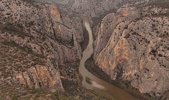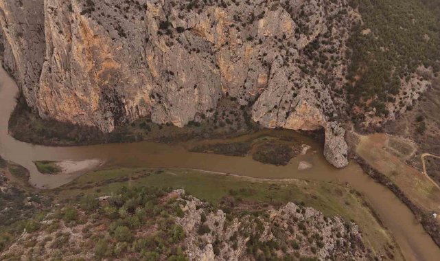 Eskişehir'in Sarıcakaya ilçesinden geçen Sakarya Nehri'nin havadan görüntüsü kartpostalları aratmadı.