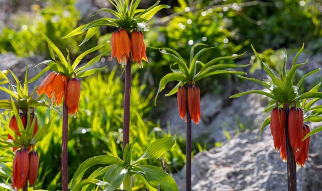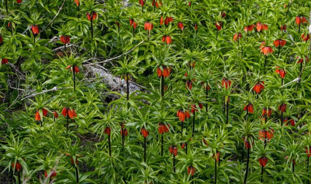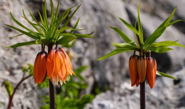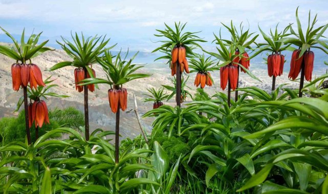 Diyarbakır'ın Ergani ilçesindeki Sakız Dağı'nda kayalıklar arasında açan ters laleler, baharda görsel bir şölen oluşturuyor.