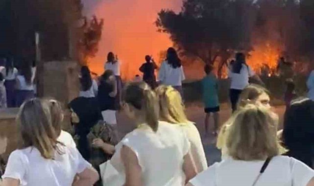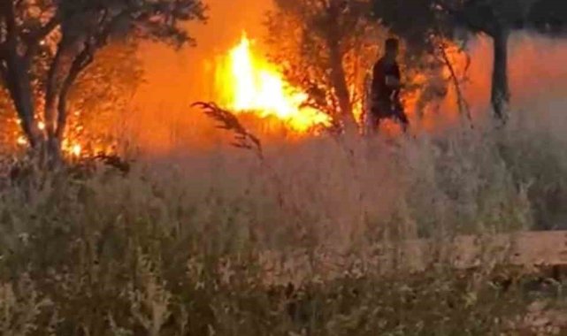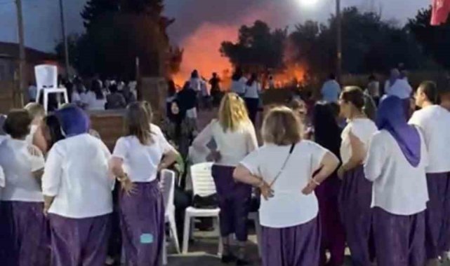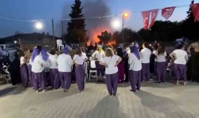Bursa'nın Karacabey ilçesinde kadınlar arasında düzenlenen şalvar gecesi sebebiyle atılan havai fişekler yangına sebep oldu. Alevler köyde paniğe yol açtı.