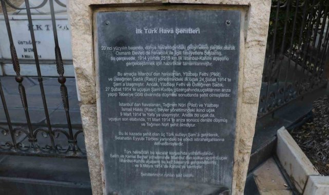 Suriye'nin başkenti Şam'daki tarihi Emevi Camii'nin arka kısmında yer alan Türk havacılık tarihinin ilk şehitlerine ait mezarlarda ziyaretçi yoğunluğu yaşanıyor.Osmanlı Devleti döneminde 1914 yılında ilk kez İstanbul'dan Kahire'ye 2 bin 515 kilometrelik uçuşu gerçekleştirmek üzere çıktıkları yolda hayatını kaybeden Türk subayları Pilot Yüzbaşı Fethi, Üsteğmen Sadık ve Üsteğmen Nuri, Türk havacılık tarihinin ilk şehitleri oldu. Şehitlerin naaşı, Suriye'nin başkenti Şam'da bulunan Emevi Camii'nin arka kısmında Selahaddin Eyyubi Türbesi'nin yanına defnedildi. 111 yıldır bölgede bulunan mezarlıkta 2011 yılında başlayan iç savaşın sona erdiği Aralık ayından bu yana ziyaretçi yoğunluğu yaşanıyor. Şehitliğe gelerek dua ettiğini ifade eden Ali Bakranlı, "Burası Şam'da Emevi Camii'nde bulunan Selahattin Eyyubi bahçesindeki ilk Türk Hava Şehitleri Anıtı. Burada 3 Türk şehidi bulunuyor. Ben de geldim duamı ettim, Fatiha okudum" dedi.
