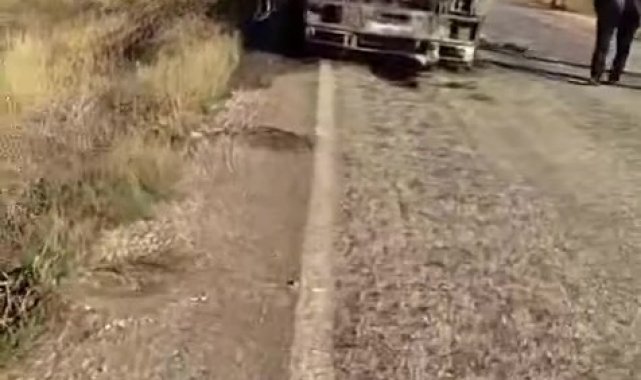 Saman yüklü kamyon yangın sonrası kullanılamaz hale geldi