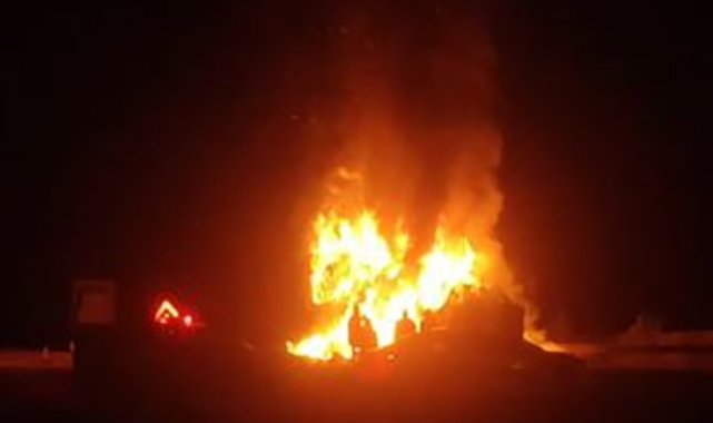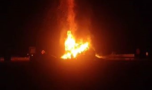 Sivas'ta saman yüklü tırda yangın çıktı. Alevlere teslim olan tır, küle döndü.