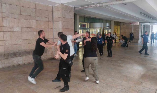 Samsun Adliyesinde duruşma çıkışı taraflar arasında kavga çıktı.Samsun 1. Ağır Ceza Mahkemesi'nde bugün görülen 2'si tutuklu 5 kişinin yargılandığı yağma davasının ilk duruşması yapıldı. Mahkeme tutuklu yargılanan T.K. ile N.C.A.'nın tutukluluk hallerinin devamına karar verip duruşmayı ileri bir tarihe erteledi. Duruşma çıkışı adliye girişinin önünde taraflar arasındaki sözlü sataşma kısa sürede kavgaya dönüştü. Tekme ve yumrukların havada uçuştuğu kavgaya anında müdahale eden adliye polisi, adliyede görevli özel güvenlik görevlileri ve çevik kuvvet polisi olayları büyümeden önledi. Olayla ilgili 1'i kadın 3 kişi yakalanarak adliye polis noktasına götürülüp idari para cezası uygulandı. Taraflar kavga dolayısıyla birbirlerinden şikayetçi olmadı.
