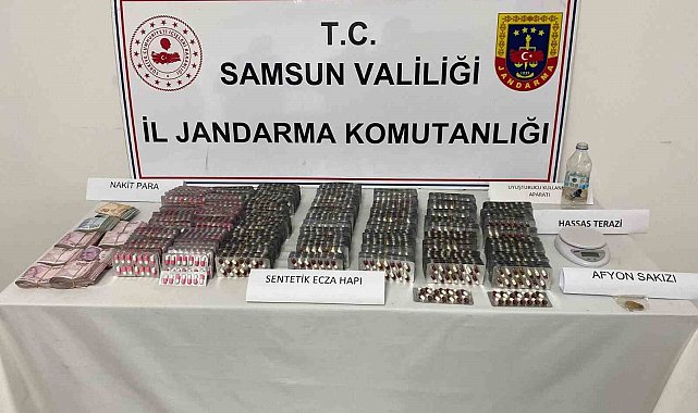 Samsun'da jandarmanın takibi sonucu 4 bin 555 adet hapla yakalanan şahıs çıkarıldığı mahkemece tutuklandı.Edinilen bilgiye göre, Samsun'un Canik ilçesinde jandarma ekipleri tarafından uyuşturucu ve uyarıcı madde ticaretinin önlenmesine yönelik yapılan araştırma sonucu G.Y. (26) isimli şahsın uyuşturucu madde ticareti yaptığı bilgisine ulaşıldı. Samsun İl Jandarma Komutanlığı Kaçakçılık ve Organize Suçlarla Mücadele (KOM) Şube Müdürlüğü, İstihbarat Şube Müdürlüğü ve Canik İlçe Jandarma Komutanlığı ekiplerince şahsın evinde yapılan aramada, 4 bin 555 adet sentetik ecza hap, 5 gram afyon sakızı, 1 adet uyuşturucu kullanma aparatı, 1 adet hassas terazi ve uyuşturucu ticaretinden elde edildiği değerlendirilen 114 bin TL para ele geçirildi. Olayla ilgili gözaltına alınan G.Y., bugün Samsun Adliyesine sevk edildi. Zanlı, çıkarıldığı mahkemece tutuklanarak Samsun T Tipi Kapalı Cezaevine gönderildi.