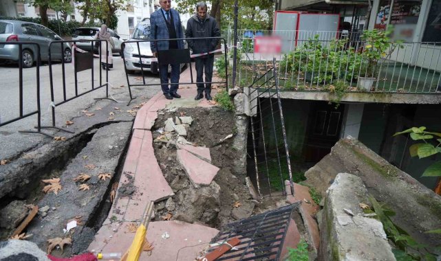 Samsun'da istinat duvarı ve kaldırım çöktü: Dükkan ve bodrum kat kullanılamaz hale geldi