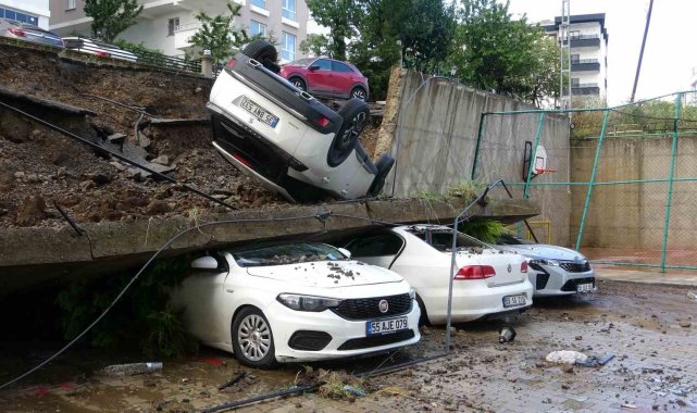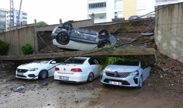 Samsun'un Atakum ilçesinde gece saatlerinde etkili olan kuvvetli sağanak sonrası çöken istinat duvarının verdiği zarar, gündüz saatlerinde gün yüzüne çıktı. İstinat duvarının çökmesi sonucu 4 araç kullanılamaz hale geldi.