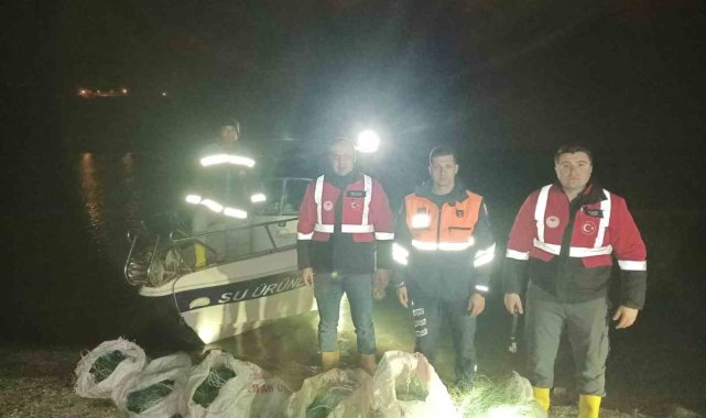 Samsun'da yapılan denetimlerde 600 metrelik yasa dışı ağ ele geçirilirken, 60 kilogram canlı sazan balığı yeniden suya bırakıldı.