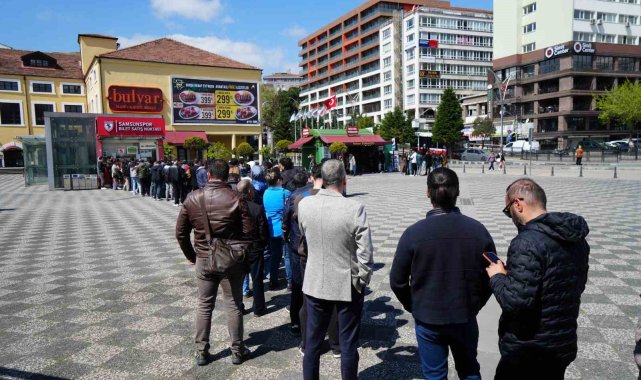 Samsun'da Galatasaray'ın şampiyonluk ihtimalinin olduğu Samsunspor-Galatasaray karşılaşmasına taraftarların gösterdiği yoğun ilgi, bilet satış noktalarında uzun kuyruklara neden oldu.