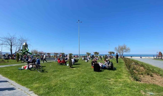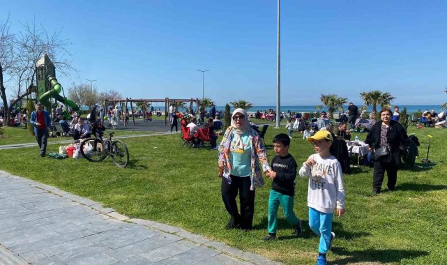 Samsun'da hava sıcaklıklarının 21 dereceye kadar yükselmesiyle birlikte vatandaşlar sahillere ve parklara adeta akın etti.