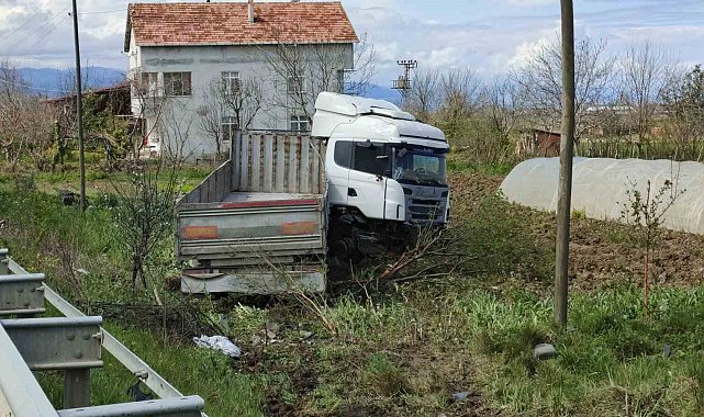 Samsun'un Alaçam ilçesinde tırın tarlaya uçtuğu kazada sürücü yaralandı.