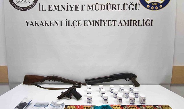 Samsun'da polis tarafından düzenlenen uyuşturucu operasyonunda 9 bin 72 adet uyuşturucu hap ve silahla yakalanan bir kişi gözaltına alındı.Edinilen bilgiye göre, Samsun İl Emniyet Müdürlüğü Narkotik Suçlarla Mücadele Şube Müdürlüğü ekipleri, Atakum ilçesinde A.A. (40) isimli şahsın kullanımında bulunan ikametlere operasyon düzenledi. Yapılan aramalarda 9 bin 72 adet sentetik ecza, 1 pompalı tüfek, 40 tabanca fişeği ve 3 tüfek kartuşu ele geçirildi. Gözaltına alınan şüpheli hakkında adli işlem başlatıldı.