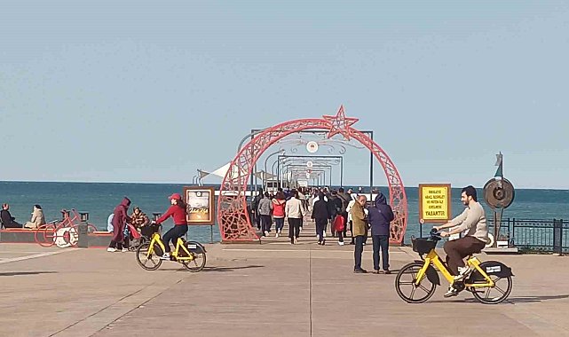 Samsun'da 15 Şubat'ta hava sıcaklığının 21 dereceyi göstermesiyle birlikte vatandaşlar sahile akın etti. Güneşli havayı fırsat bilen vatandaşlar yürüyüş yaptı, bisiklet sürdü, çocuklar ise parklarda vakit geçirdi.