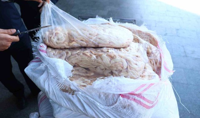 Şanlıurfa'dan Antalya'ya otobüsle gönderilen 300 kilogram sakatata el konulurken, taşıyıcı firmaya cezai işlem uygulandı.Antalya Büyükşehir Belediyesi Zabıta ekipleri, insan sağlığını tehdit eden gıda taşımacılığına karşı denetimlerini aralıksız sürdürüyor. Antalya Şehirlerarası Otobüs Terminali'nde gerçekleştirilen kontrollerde, otobüslerle usulüne aykırı şekilde taşınan ve mumbar yapımında kullanılacağı düşünülen 3 çuval bağırsak tespit edildi. Ekipler, Şanlıurfa'dan gönderilen ve piyasaya sürülmesi planlanan yaklaşık 300 kilo ağırlığındaki 3 çuval bağırsağa el koydu. Bu esnada ürünleri almaya gelen alıcı ekipleri görünce olay yerinden uzaklaştı. 5996 sayılı Veteriner Hizmetleri, Bitki Sağlığı, Gıda ve Yem Kanunu kapsamında taşıyıcı otobüs firmasına cezai işlem uygulandı."Çukura gömüldükten sonra üstüne kireç dökme işlemi gerçekleştirildi"Büyükşehir Belediyesi Terminal Zabıta Müdürlüğü'nde görevli Sibel Deniz yakalanan hayvan iç organlarına piyasaya sürülmeden el konulduğunu söyledi. Deniz, "Antalya Şehirlerarası Otobüs Terminali'nde bir otobüs firması tarafından çuvallar içerisinde gıda ürünlerinin taşındığını tespit ettik. Yapmış olduğumuz denetimlerde çuvallarda bağırsaklar olduğunu fark edince İlçe Tarım ve Hayvancılık Müdürlüğü ile iletişime geçerek gerekli yasal işlemleri başlattık. Bu işlemler kapsamında taşıyıcı firmaya gerekli cezai işlem uygulandı. Ayrıca bu gıda ürünlerinin tüketilmesi uygun olmadığı için usulüne uygun olarak çukura gömüldükten sonra üstüne kireç dökme işlemi gerçekleştirildi. Daha sonra da toprak ile kapatıldı. İmha işlemi de bu şekilde tamamlandı. Vatandaşlarımızın sağlığını korumak için denetimlerimize aralıksız devam ediyoruz" dedi.