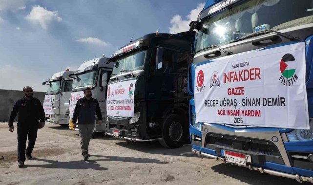 İsrail ile Hamas arasında sağlanan ateşkesin ardından Şanlıurfa'da toplanan insani yardım tırları Gazze'ye ulaşmaya devam ediyor.