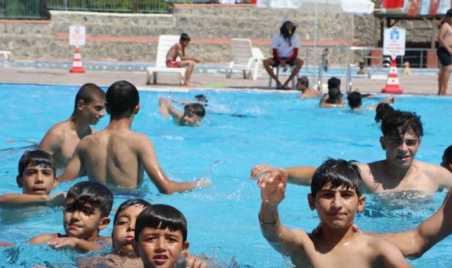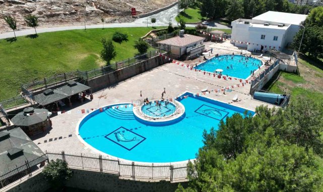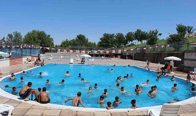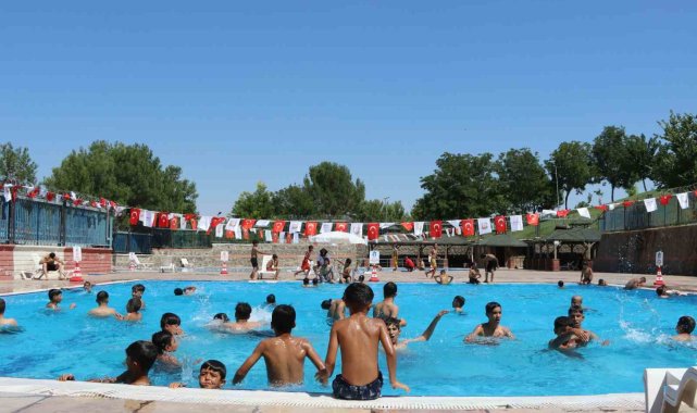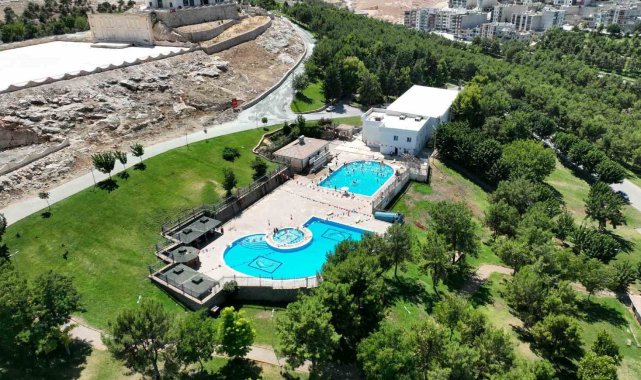 Mevsim normallerinin üzerindeki sıcaklıklara karşı çocuklar ve gençler, Şanlıurfa Büyükşehir Belediyesi'nin havuzlarında serinliyor.