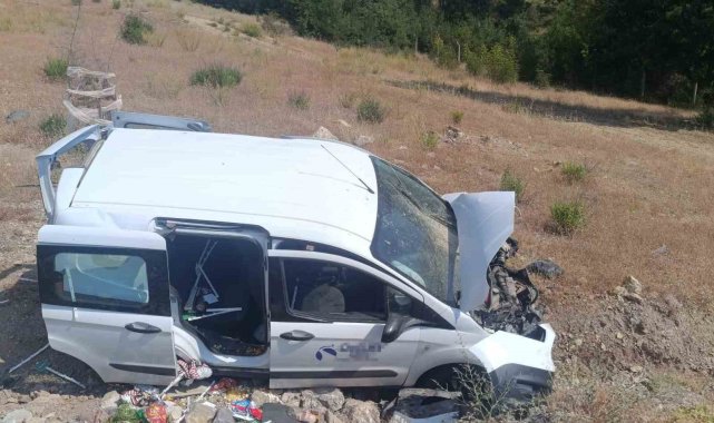 Şarampole uçan hafif ticari aracın sürücüsü yaralandı