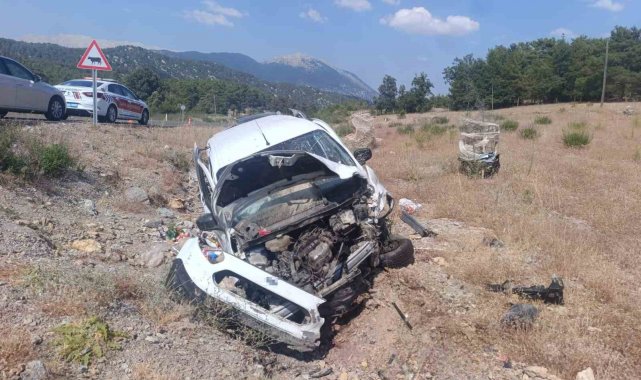 Gündoğmuş İlçesi Karadere Mahallesi yol kavşağında hafif ticari araç 5 metrelik şarampole uçtu, sürücüsü yaralandı.