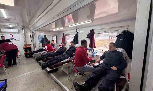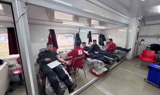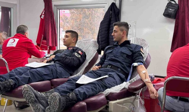 Saraykent Jandarma personeli kan bağışının önemine dikkat çekmek için kan verdi.