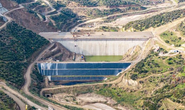 Aydın'ın en büyük yatırımlarından olan Sarıçay Barajı'nın gövde dolgusunun 972 bin metreküplük kısmı tamamlanırken, 21 milyon metreküp içme suyu sağlayacak olan barajda çalışmalar hız kesmiyor.