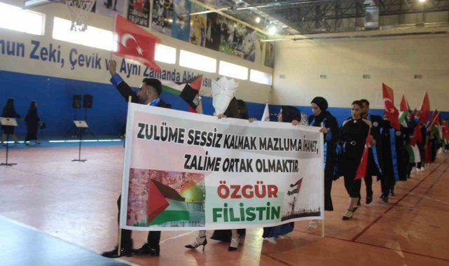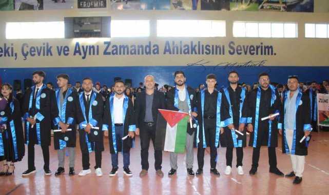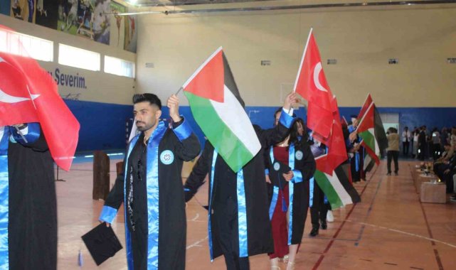 Sarıkamış Meslek Yüksekokulu'nda mezuniyet coşkusu yaşandı.Kars'ın Sarıkamış ilçesinde, Kafkas Üniversitesi'ne bağlı Sarıkamış Meslek Yüksekokulu'nda mezuniyet töreni düzenlendi.Törene Sarıkamış Kaymakamı Enis Aslantatar, Belediye Başkanı Serdar Kılıç, ilçe protokolü, akademisyenler, öğrenciler ve aileleri katıldı.Saygı duruşu ve İstiklal Marşı ile başlayan törende, protokol üyeleri öğrencilere hitaben konuşmalar yaptı. Konuşmalarda genç mezunlara başarı temennilerinde bulunulurken, eğitimin ve birlikteliğin önemi vurgulandı.Törende öğrencilerin Filistin'e destek amacıyla Filistin bayrakları açtı. Öğrencilerin bu duyarlı davranışı, törene katılamlardan alkış aldı.Tören temsili mezuniyet belgelerinin verilmesi veöğrenciler keplerini havaya atmasıyla son buldu.