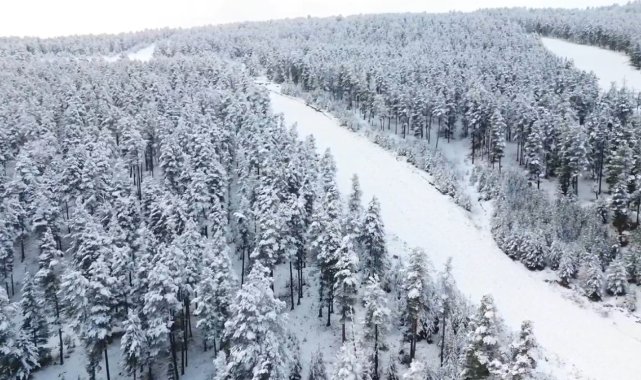 Sarıkamış'ta kış yüzünü gösterdi. Hava sıcaklığının eksi 7 derece ölçüldüğü ilçede, kayak merkezi ve sarıçam ormanları havadan görüntülendi.Kars'ın Sarıkamış ilçesinde kar yağışıyla birlikte soğuk hava da etkili olmaya başladı. Hava sıcaklığının hissedilir bir şekilde düştüğü Sarıkamış'ta sarıçam ormanları arasında bulunan Türkiye'nin en önemli kayak merkezlerinden birisi olan Sarıkamış Kayak Merkezi tamamen beyaza büründü.Sarıçam ormanlarında bulunan çam ağaçlarının da tamamen beyaz örtüyle kaplandığı ilçede soğuk hava rağmen kartpostal görüntüler ortaya çıktı.Sarıkamış'a mevsimin ilk karının düştüğünü ifade eden vatandaşlar, "2 bin 300 rakımda bulunan Sarıkamış Kayak Merkezi'ndeyim. Sarıkamış'a yılın ilk karı düştü. her yer beyaza büründü. İnşallah bol bereketli bir sezon geçirir Sarıkamış, bizlerde fotoğrafçılar olarak geldik kayak merkezine fotoğraf çekmeye sarıçam ağaçları tamamen beyaza bürünmüş. Çok güzel görüntüler çektik" dedi.Öte yandan, başta boz ayılar olmak üzere vaşak, kurt, domuz, ceylan, tilki ve tavşan gibi bir çok yaban hayvanının yaşam alanı olan Sarıçam ormanları ve Sarıkamış Kayak Merkezi havadan görüntülendi. Kartpostal görüntüleri görenleri büyüledi.