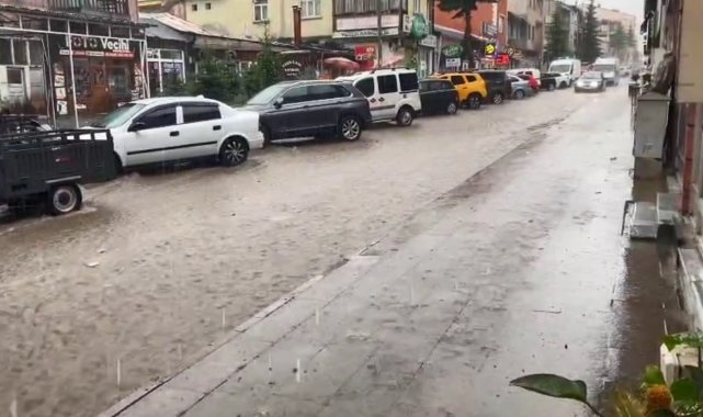 Sarıkamış'ta bir anda başlayan sağanak yağmur cadde ve sokakları gölü döndürdü.Kars'ın Sarıkamış ilçesinde öğleden sonra başlayan kuvvetli sağanak yağmur, kısa sürede cadde ve sokakları göle çevirirken, çok sayıda işyerinin bodrumuna su doldu.Sarıkamış'ta 2 gündür etkili olan sıcak hava yerini yağmura bıraktı. İlçede öğlenden sonra başlayan sağanak yağmur hayatı durma noktasına getirdi. Sağanak yağmurun sele döndüğü ilçede caddeler sular altında kaldı. Yaklaşık 15 dakika süren yağmur ekili alanları da olumsuz etkiledi.Öte yandan Meteoroloji'den de sağanak ve dolu uyarısı yapıldı. Meteoroloji 16. Bölge Müdürlüğü'nce yapılan uyarıda vatandaşlar sel ve su baskınlarına karşı uyarıldı.