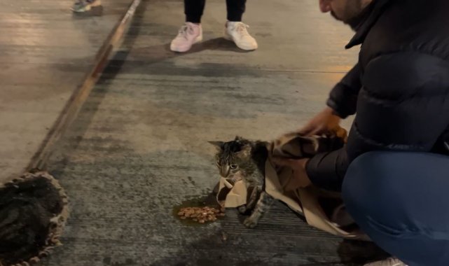Sarıyer'de denize düşen kediyi kurtarma operasyonu