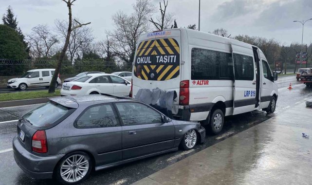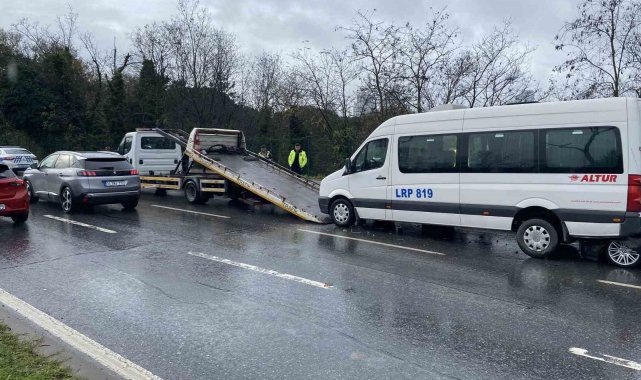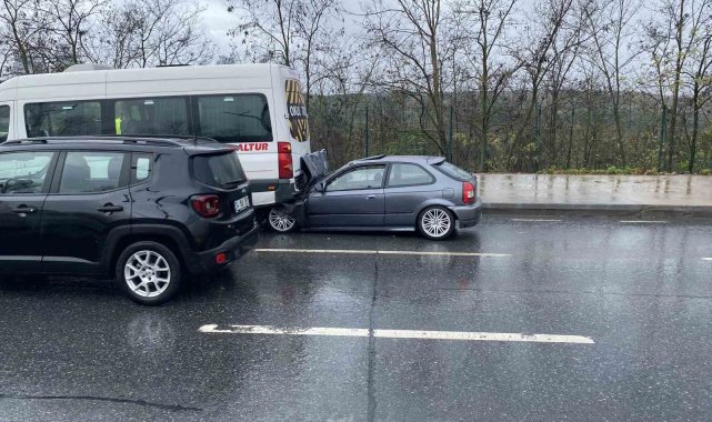 Sarıyer'de otomobil, yağışın etkisiyle kayganlaşan yolda kontrolden çıkarak park halindeki servis aracına çarptı. Kazada 1 kişi yaralandı.