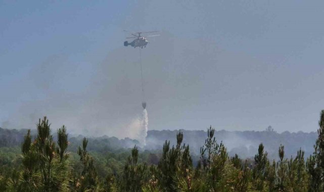 Şarköy'de orman yangınına helikopterle müdahale sürüyor