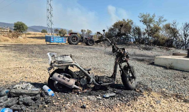 Tekirdağ'ın Şarköy ilçesinde etkisini sürdüren orman yangınında bir traktör ve bir motosiklet yanarak demir yığınına döndü.Tekirdağ Şarköy'de dün başlayan ve 22 saattir devam eden orman yangını, yerleşim alanlarına yaklaşırken birçok noktada maddi zarar meydana geldi. Alevlerin ulaştığı bölgelerde bir traktör ile bir motosiklet tamamen yanarak kullanılmaz hale geldi.Yangının yol açtığı zararda araçlar küle dönerken, vatandaşlarda bu durum karşısında şoke oldu. Ekipler yangının yayılmasını önlemek için yoğun şekilde çalışmalarını sürdürüyor.