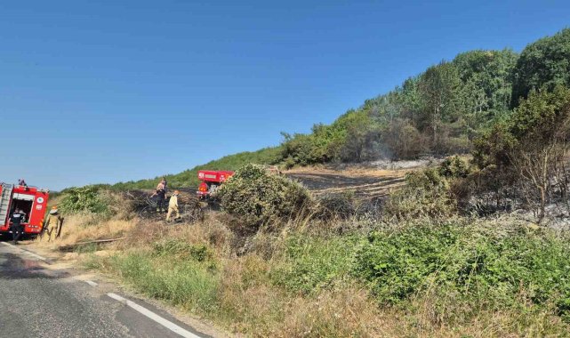 Şarköy'de tarlada çıkan yangın makilik alana sıçradı
