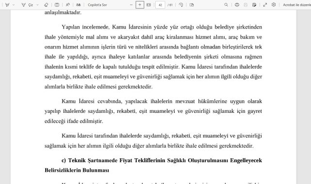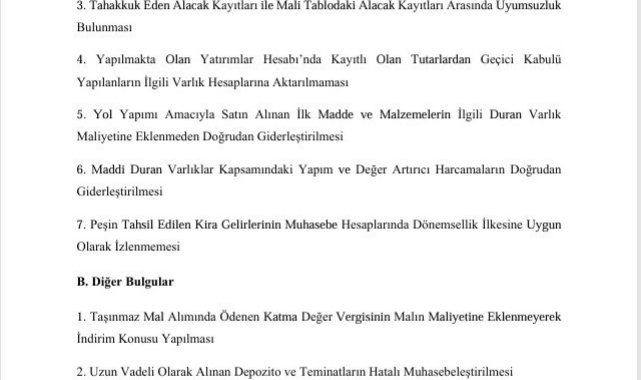 Sayıştay'ın 2024 yılı denetim raporuna göre Altınordu Belediyesi, Cumhurbaşkanlığı'nın tasarruf genelgelerine aykırı şekilde 9 milyon 952 bin TL tutarında harcama yaptı.Sayıştay Başkanlığı, Ordu Altınordu Belediyesi 2024 yılı denetim raporunu açıkladı. Raporda toplam 17 bulgu yer aldı.Denetim raporunda en dikkat çekici bulgulardan biri, belediyenin doğrudan temin yöntemiyle yaptığı harcamaların Cumhurbaşkanlığı tasarruf genelgelerine aykırı olması oldu. Sayıştay denetçileri, 2024 yılında Altınordu Belediyesi tarafından; basın-yayın ve abonelik hizmetleri için 680 bin 392 TL, resmi bayram dışındaki tanıtım ve ilan hizmetleri için 3 milyon 5 bin 500 TL, sosyal yardım niteliği taşımayan çeşitli eşya alımları için 1 milyon 699 bin 900 TL, "organizasyon, konser ve hediyelik eşya alımları" için 4 milyon 599 bin 450 TL olmak üzere toplam 9 milyon 952 bin 242 TL tutarında alım yapıldığını tespit etti. Sayıştay raporunda, söz konusu alımların hem 2021/14 hem de 2024/7 sayılı Cumhurbaşkanlığı Tasarruf Tedbirleri Genelgelerine aykırı olduğu belirtildi. Her ne kadar belediye yönetimi "resmî bayram dışı ilan yapılmadığını" savunsa da, incelemede "Gazeteciler Günü, yeni yıl kutlaması" gibi "resmî olmayan günlerde yapılan tanıtım harcamaları" tespit edildi. Raporda, "Kamu idaresi, Cumhurbaşkanlığı genelgelerine aykırı toplam 9 milyon 952 bin 242 TL harcama yapmıştır. 2021/14 ve 2024/7 sayılı genelgelere göre, resmi bayramlar dışında açılış, organizasyon, konser, davet ve tanıtım harcamaları yapılmaması, basılı yayınların basılmayıp elektronik ortamda paylaşılması öngörülüyordu. İncelemede; basın-yayın abonelik hizmetleri için 680 bin 392 TL, resmi bayram olmayan günlere ilan hizmetleri için 3 milyon 5 bin 500 TL, sosyal yardım niteliği olmayan eşya alımları için 1 milyon 699 bin 900 TL, organizasyon, konser ve hediyelik alımlar için 4 milyon 599 bin 450 TL olmak üzere toplam 9 milyon 952 bin 242 TL harcama yapıldığı tespit edildi. Kamu idaresi, bazı harcamaların genelge öncesi yapıldığını ve resmi bayram olmayan günlere ait ilan olmadığını savunsa da, incelemede bu harcamaların tasarruf tedbirlerine aykırı olduğu görülmüştür" denildi.Belediye şirketine ayrıcalıklı ihaleSayıştay denetçileri, Altınordu Belediyesi'nin mal ve hizmet alımlarını mevzuata aykırı biçimde tek ihalede topladığını tespit etti. Sayıştay, "Kamu idaresinin mal ve hizmet alım işinin aynı ihale bünyesine dâhil edilerek gerçekleştirildiği görülmüştür. Yapılan incelemede, kamu idaresinin yüzde yüz ortağı olduğu belediye şirketinden ihale yöntemiyle mal alımı ve akaryakıt dahil araç kiralanması hizmet alımı, araç bakım ve onarım hizmet alımının işlerin türü ve nitelikleri arasında bağlantı olmadan birleştirilerek tek ihale ile yapıldığı, ayrıca ihaleye katılanlar arasında belediyenin şirketi olmasına rağmen ihalenin kısmi teklife de kapalı tutulduğu tespit edilmiştir. Kamu idaresi tarafından ihalelerde saydamlığı, rekabeti, eşit muameleyi ve güvenirliği sağlamak için her alımın ilgili olduğu diğer alımlarla birlikte ihale edilmesi gerekmektedir" tespitinde bulundu.9 bin 629 iş yeri ruhsatsızSayıştay raporuna göre Altınordu Belediyesi, ilçe genelinde faaliyet gösteren işletmelerin ruhsat denetiminde büyük eksiklikler yaşıyor. Sayıştay, "Yapılan incelemede, vergi dairesi müdürlüklerinden alınan bilgi ve belgelere göre, belediye sınırları içerisinde aktif olarak faaliyette bulunan iş yerlerinin toplam sayısı 22 bin 852 adettir. Bu verilerin kamu idaresinin kayıtlarında yer alan bilgiler ile karşılaştırılması sonucu, 5 bin 323 adedinin iş yeri açma ve çalışma ruhsatı aldığı, 7 bin 900 adedinin iş yeri açma ve çalışma ruhsatı almasına gerek olmadığı, 9 bin 629 adet iş yerinin ise iş yeri açma ve çalışma ruhsatı olmaksızın faaliyet gösterdiği; buna bağlı olarak da kamu idaresinin, iş yeri açma ve çalışma ruhsat harcı geliri kaybına uğradığı tespit edilmiştir" ifadelerine yer verdi.18,8 milyon TL'lik gıda kolisi dağıtımı belgelenmemişAltınordu Belediyesi'nin 2024 yılında yaptığı gıda kolisi yardımlarında mevzuata aykırı işlem tespit eden Sayıştay, raporda şunları kaydetti: "Kamu idaresi tarafından ayni yardımlara ilişkin mevzuatta yer alan belgelerin düzenlenmediği görülmüştür. Yapılan incelemede, idarenin 2024 yılı Ocak ayında gerçekleştirmiş olduğu ihtiyaç sahiplerine dağıtılmak üzere gerçekleştirilen gıda kolisi mal alımı ihalesinde, iş artışı ile toplam 18 milyon 858 bin 720 TL tutarında 24 bin adet gıda kolisi alımı yapıldığı ancak söz konusu alımların kimlere ve hangi suretle dağıtıldığına ilişkin kanıtlayıcı belgelerin ödeme emri eki belgeler arasında yer almadığı tespit edilmiştir."Sayıştay, belediyenin tasarruf tedbirlerine uyması, ruhsatsız işyerlerini tespit etmesi ve sosyal yardımları mevzuata uygun şekilde yürütmesini önerdi.