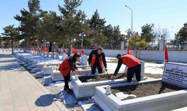 Erzincan Aile ve Sosyal Hizmetler İl Müdürlüğü ekipleri, bayram öncesi şehit kabirlerini ziyaret etti.