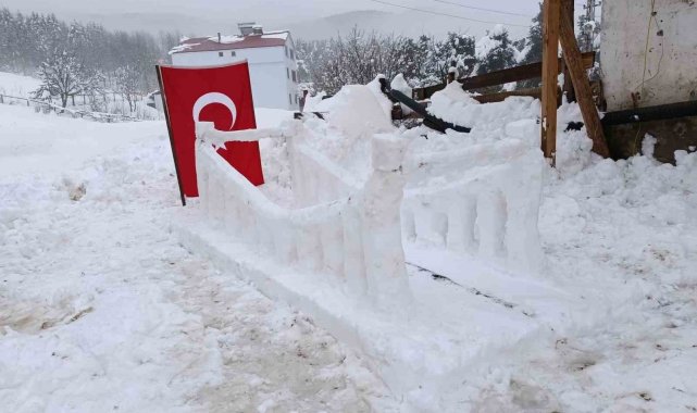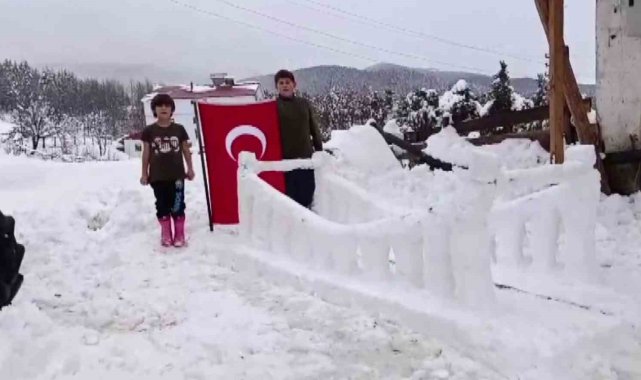 Şehitleri anmak amacıyla kardan '15 Temmuz Şehitler Köprüsü' yaptılar, görenleri ise duygulandırdılar