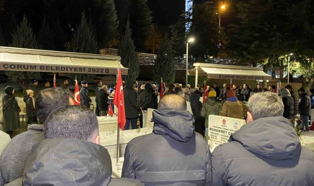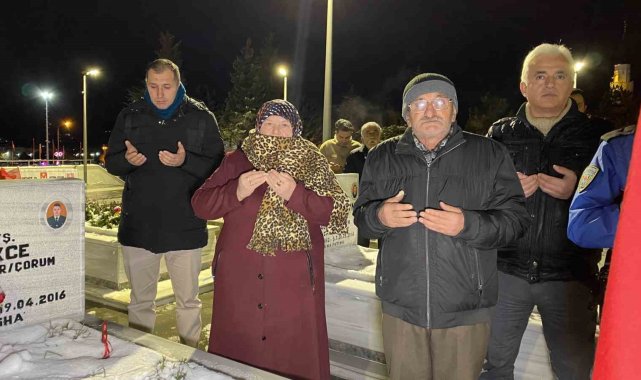 Çorum'da şehit aileleri, yılbaşı gecesi düzenlenen program kapsamında yeni yılı şehitlikte dualarla karşıladı.