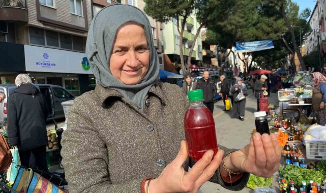 Aydın'ın Bozdoğan ilçesinde yaşayan Gülfidan Ömeroğlu, kendi bahçesinde yetiştirdikleri ürünleri Nazilli Perşembe pazarında satışa sunuyor. Ömeroğlu'nun kırmızı elmadan yaptığı ve 8 ay sonra olgunlaşan sirkesine yoğun talep oluyor.