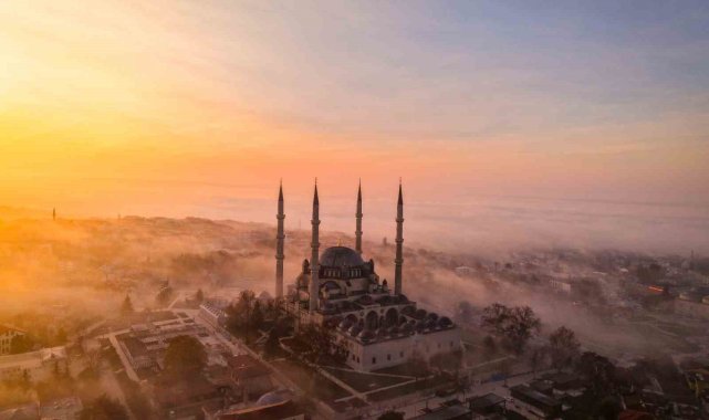Edirne'nin simgesi Selimiye Camii'nin minareleri ve kubbesi gün ışığıyla birleşen sisle birlikte kartpostallık görüntü sundu.Edirne'de vatandaşlar sabahın erken saatlerinde etkili olan sisle güne başladı. Kent merkezini kaplayan sis, özellikle tarihi yapılarda görsel bir atmosfer oluşturdu. Gün doğumuyla birlikte güneşin ilk ışıkları, Edirne'nin simgesi Selimiye Camii'nin minareleri ve kubbesi üzerine yansıdı. Sisle birleşen ışıklar, eşsiz bir görüntü ortaya çıkardı. Mimar Sinan'ın "ustalık eserim" dediği Selimiye Camii, sisin arasından yükselen minareleriyle adeta masalsı bir siluete büründü.Tarihi yapı adeta tabloyu andırdıGün doğumunda oluşan renk geçişleri ve sisin oluşturduğu doğal efekt, Selimiye Camii'ni tabloyu andıran bir görünüme kavuşturdu. Ortaya çıkan manzara, sabah saatlerinde vatandaşlar ve fotoğraf meraklılarının ilgisini çekti.Asırlardır Edirne'nin simgesi olan Selimiye Camii, bu kez sis ve gün doğumunun oluşturduğu atmosferle ihtişamını bir kez daha gözler önüne serdi.