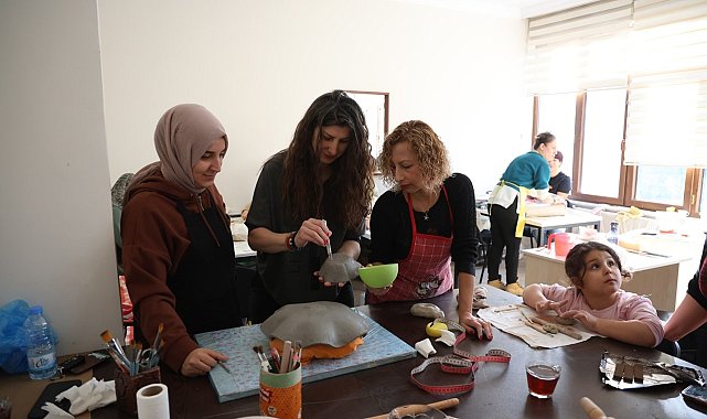 Kartepe'de ev hanımlarının yoğun ilgi gösterdiği seramik kursunda, uzman eğitmenler eşliğinde üretilen eserler göz dolduruyor.Kartepe Belediyesi'ne bağlı KARMEK tarafından açılan seramik kursunda kadınların yeteneklerini keşfetmeleri için güzel bir fırsat sunuyor. Kadınlar uzman eğitmenlerden aldıkları eğitimler sayesinde hem teknik becerilerini geliştiriyor hem de kendi özgün eserlerini üretme imkanı buluyorlar.Seramik kursu hakkında bilgi veren eğitmen Songül Adıyaman, "Seramik kursumuzda şuanda 22 öğrencimiz eğitim almaktadır. Genellikle ev hanımları tarafından kursumuz tercih edilmektedir. Kadınlarımızın sanata olan ilgisi ve sevgiyle işledikleri eserlere yetenekleri de dahil olunca ortaya birbirinden güzel sanatsal eserler çıkıyor. Üretilen ürünlerin bir kısmı ev dekorasyonu ve hediyelik olarak kullanılırken, bir kısmı da satılarak ev ekonomilerine katkı ve destek sağlanıyor" dedi.