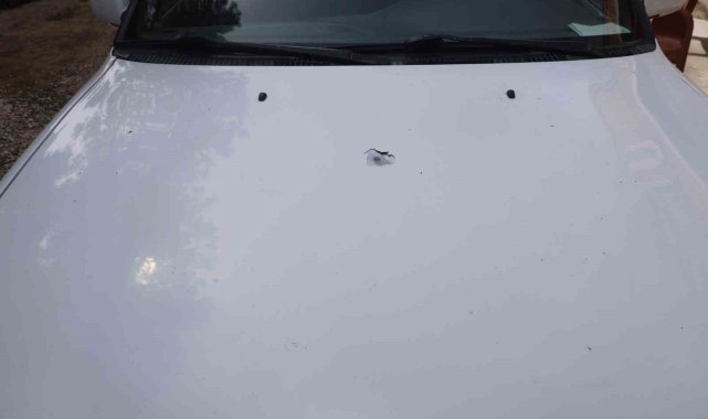 Sesle panik ve korku yaşayan vatandaşın aracına yorgun mermi isabet etti