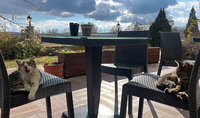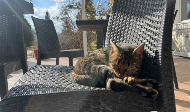 Eskişehir'de etkili olan sıcak havayla birlikte sokak hayvanları da güneşli havayı değerlendirdi.Eskişehir'de günlerdir devam eden güneşli ve sıcak hava etkisini sürdürmeye devam ediyor. Bir kurum bahçesindeki kediler de sıcak havanın keyfini güneşlenerek çıkardı. Kediler bahçedeki sandalyelerde güneşlenirken, ortaya sevimli görüntüler çıktı. Çevredeki vatandaşlar da bu anları cep telefonlarıyla kaydetti.