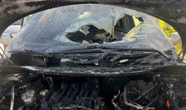 Seyir halindeki alev alan otomobil kullanılamaz hale geldi
