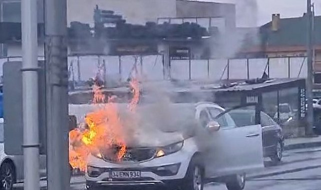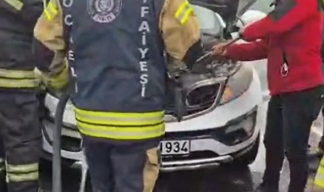 Kocaeli'nin Gebze ilçesinde seyir halinde olan SUV tipi araç alev aldı. Sürücü yara almazken, yangın itfaiye ekipleri tarafından söndürüldü.