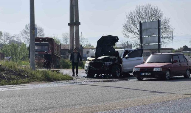 Düzce(İHA) – Düzce'de seyir halindeyken motor kısmından alev alan cip kullanılmaz hale geldi.