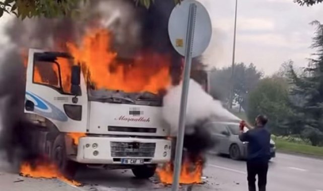 Seyir halindeki kamyon alev alev yandı